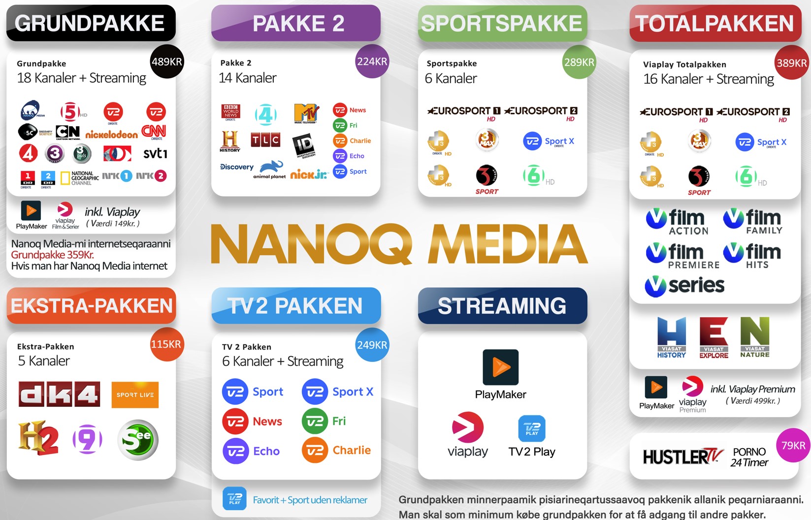 Med en tv-pakke Nanoq Media får du adgang til streamingtjenesten Viaplay.